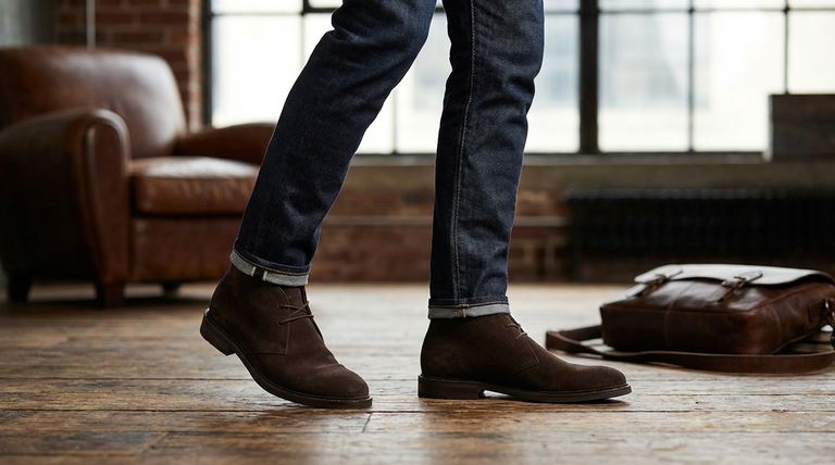 - Если ваша основная цель — максимальная универсальность: Выберите чакка из замши средне-коричневого цвета, так как они обладают уникальной способностью как к более формальному образу с темным денимом, так и к повседневному с брюками чинос.