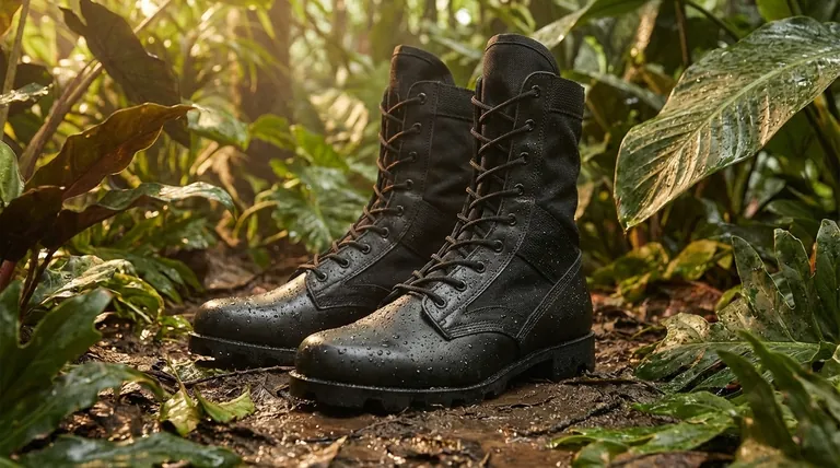 Устойчивость походных ботинок к запаху является прямым следствием их специфических, специально разработанных функций. Они были созданы для решения проблемы "тропической гнили" (серьезной кожной инфекции) у солдат в жарких, влажных условиях путем максимального сохранения сухости ног.