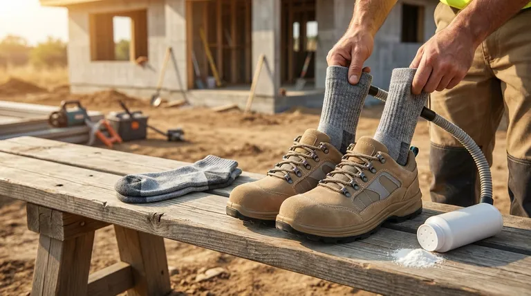 Чтобы предотвратить потливость ног в рабочей обуви, вам нужна двухкомпонентная стратегия: используйте присыпку для ног, чтобы впитывать влагу непосредственно у источника, и носите высококачественные влагоотводящие носки, чтобы отводить оставшийся пот от кожи. Эта комбинация является наиболее эффективным способом сохранить ваши ноги сухими и комфортными в течение долгого рабочего дня.