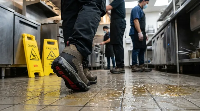 Безопасная обувь часто должна делать больше, чем просто предотвращать скольжение. Ваша оценка должна учитывать все потенциальные опасности, присутствующие на рабочем месте.