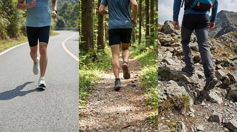 Кроссовки для бега по шоссе максимизируют амортизацию для поглощения ударов на твердых поверхностях. Походные ботинки, напротив, часто имеют более твердую, более устойчивую подошву, чтобы предотвратить скручивание стопы на неровной земле.