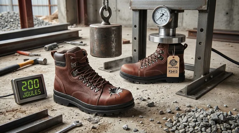Стандарт ASTM F2413 является основной спецификацией требований к производительности защитной обуви. Он излагает точные методы испытаний и критерии, включая испытания на удар 200 Дж и сжатие 15 кН, которые должна пройти обувь для сертификации.