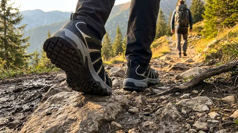 Походные тропы полны опасностей, таких как острые камни и корни деревьев. Качественная походная обувь использует прочную подошву и часто усиленный носок для защиты ваших ног от ударов.