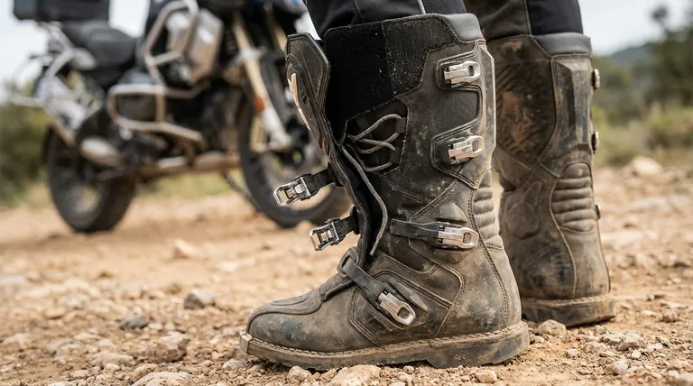 Туристические мотоботинки в основном используют комбинацию больших регулируемых пряжек и широких панелей на липучках. Эта двойная система часто дополняется внутренним механизмом шнуровки для создания очень надежной и настраиваемой посадки, специально разработанной для уникальных требований езды по смешанной местности.