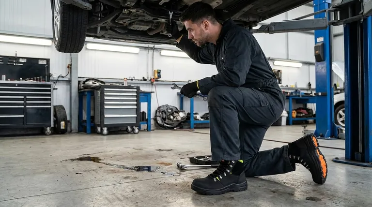 Помимо стабильности, ваши ботинки должны активно защищать вас от специфических опасностей, присутствующих в автосервисе.