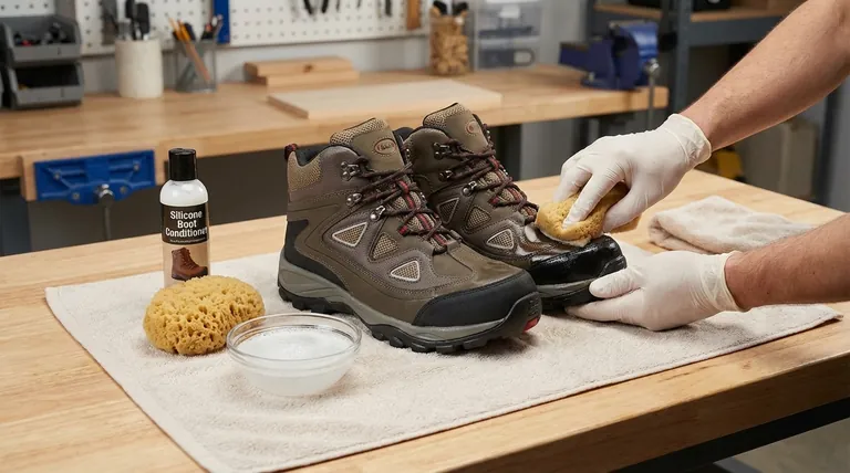 Чистка — это только половина дела. Чтобы предотвратить растрескивание, которое сигнализирует об окончании срока службы сапог, вы должны активно кондиционировать резину.